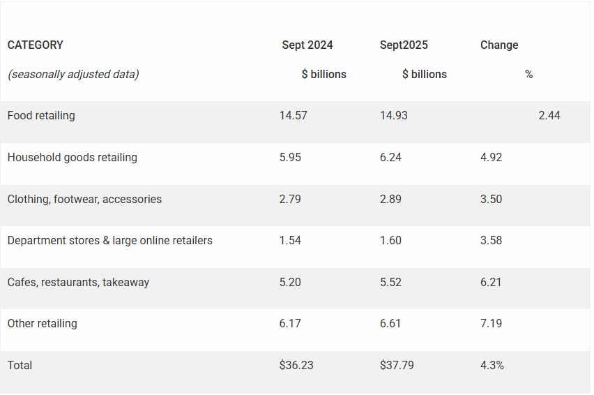 Australian Bureau of Statistics (ABS) Data Showing a 4.3% Rise in Retail Spending before the Vital Holiday Trading SeasonNovember 4, Australian Bureau of Statistics (ABS) data showing a 4.3% rise in retail spending over the past year reflects a solid foundation for retailers as they enter the vital pre-Christmas trading season the Australian Retailers Association (ARA) and National Retail Association (NRA) said today.See more -